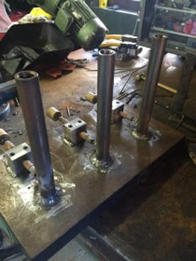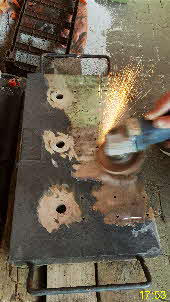 Die Träger für die Zündvorrichtungen und die neuen Rohre wurden auf die Grundplatte geschweißt.