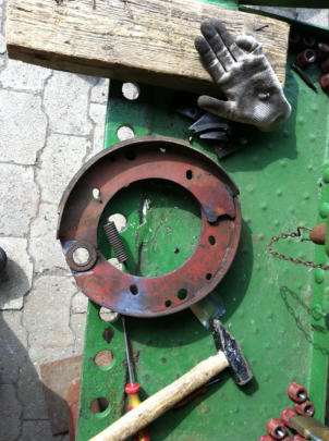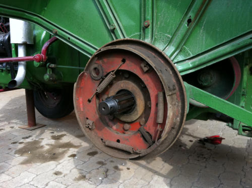 Aufgrund von Bremsschwierigkeiten während der Umzüge, wurden im Juni 2011, die Brems-backen bei der Fa. Pfeiffer Land & Gartentechnik in Wevelinghoven bestellt und wenig später montiert.
