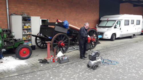 Nachdem klar war, welche Ersatzteile für den Motor benötigt wurden, war die Überlegung, das Geld für diese Ersatzteile nicht mehr auszugeben, sondern nach einem Austauschmotor Ausschau zu halten. Nachdem diese Planung und daraus folgend die Kosten vom Bürgerverein unterstützt und genehmingt wurden, wurde unter Federführung von Heinz Höhne und Hans Schneider, der defekte Motor aus- und der Austauschmotor eingebaut. Wie man auf den Bildern erkennen kann, handelte es sich um äußerst umfangreiche Arbeiten.Wir möchten an dieser Stelle nochmal unseren Dank an die beiden Akteure aussprechen!