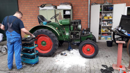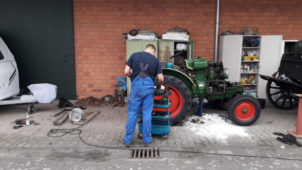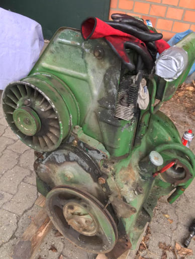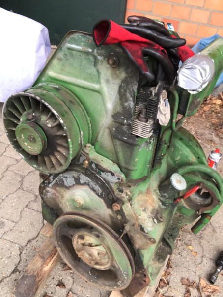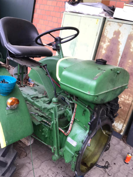 So sah der Trecker vor dem Tausch aus, und so sollte er auch nach der Reparatur wieder aussehen. Das ist gelungen. Der neue Motor läuft wesentlich ruhiger.
