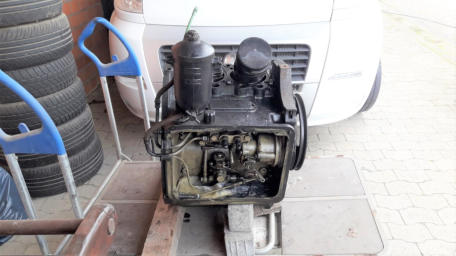 Hier einige Fotos vom Tausch des Diesel-Motors: